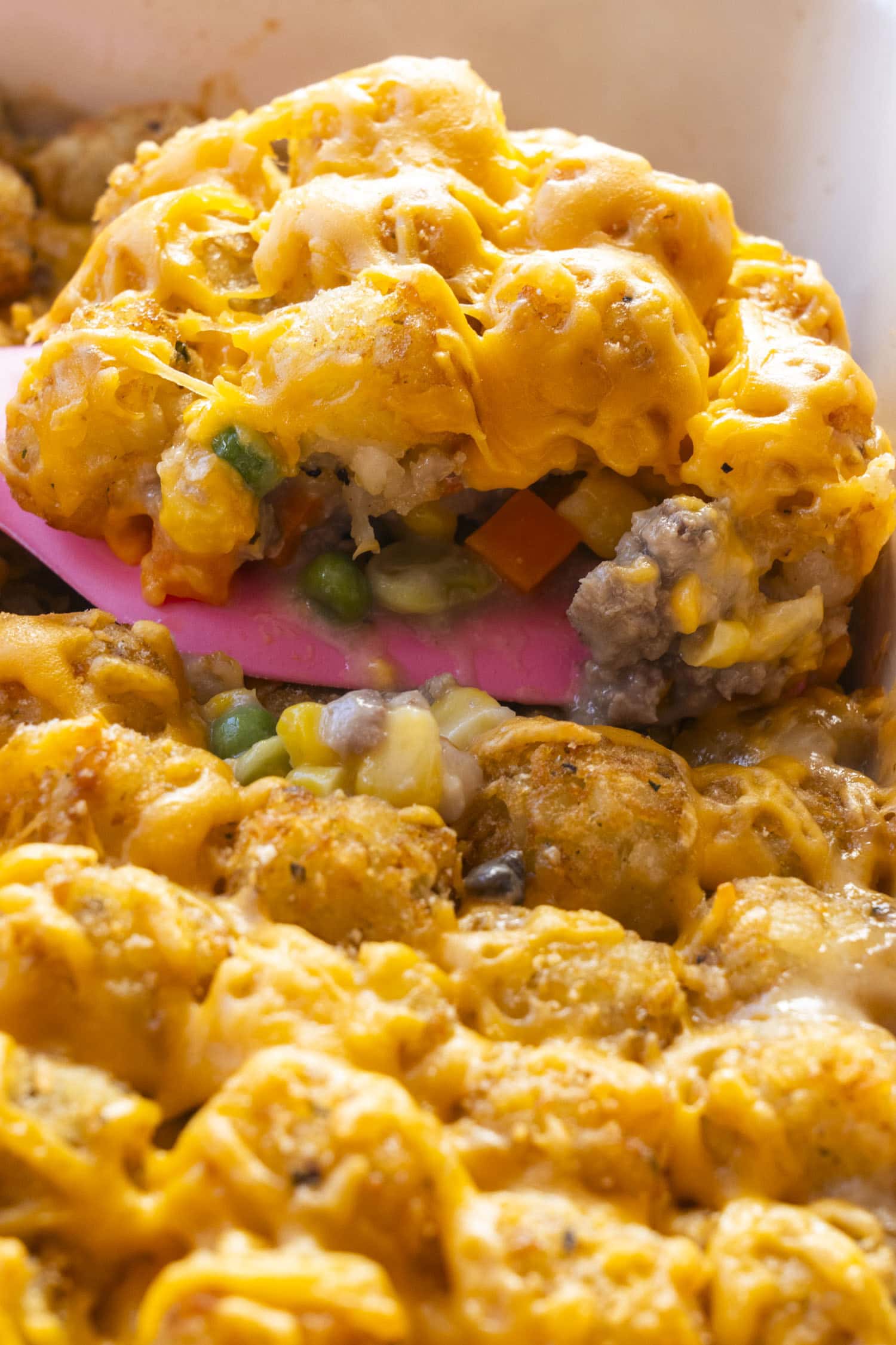 - 1 (28-32 ounce bag) frozen tater tots (you’ll use about 3/4 of the bag to cover the top)