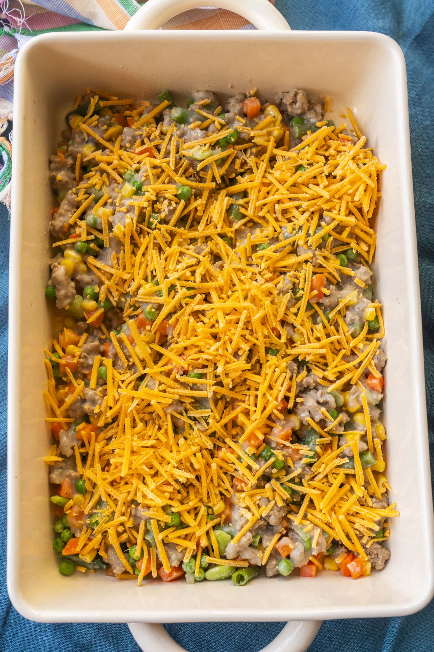 - Cheddar Cheese: You need 2 cups total—one for the filling and one for the melty top. I prefer sharp cheddar for more flavor.