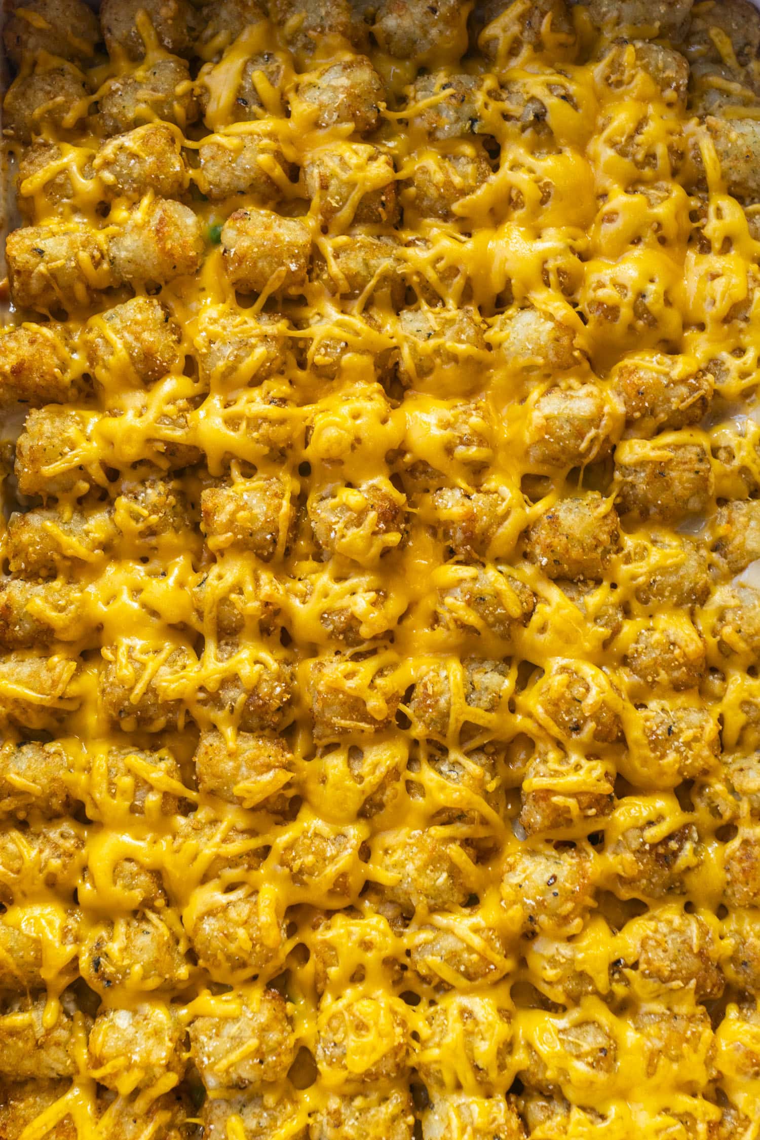 - Sprinkle the remaining 1 cup of cheddar cheese over the top of the crispy tots. Return to the oven for 5 minutes just to melt the cheese until it’s bubbly.