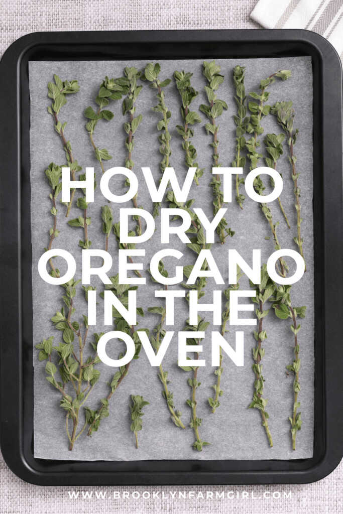 Place oregano in a single layer on a baking sheet. You can dry directly on the baking sheet or put down parchment paper. Place in the oven for 1 hour.