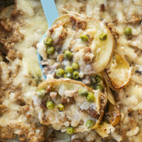 A hearty Midwestern classic: layers of tender potatoes, savory ground turkey, green peas, and creamy sauce, baked with melted cheese for the ultimate cozy casserole.