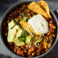 - Serve in bowls and add toppings of your choice (shredded cheese, sour cream, avocado slices, crushed tortilla chips).